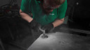 Die Diamantschicht wird durch Graphitspäne gekühlt und verhindert zuverlässig Abplatzungen. Ideal zum Schleifen von glasiertem oder sprödem Feinsteinzeug.